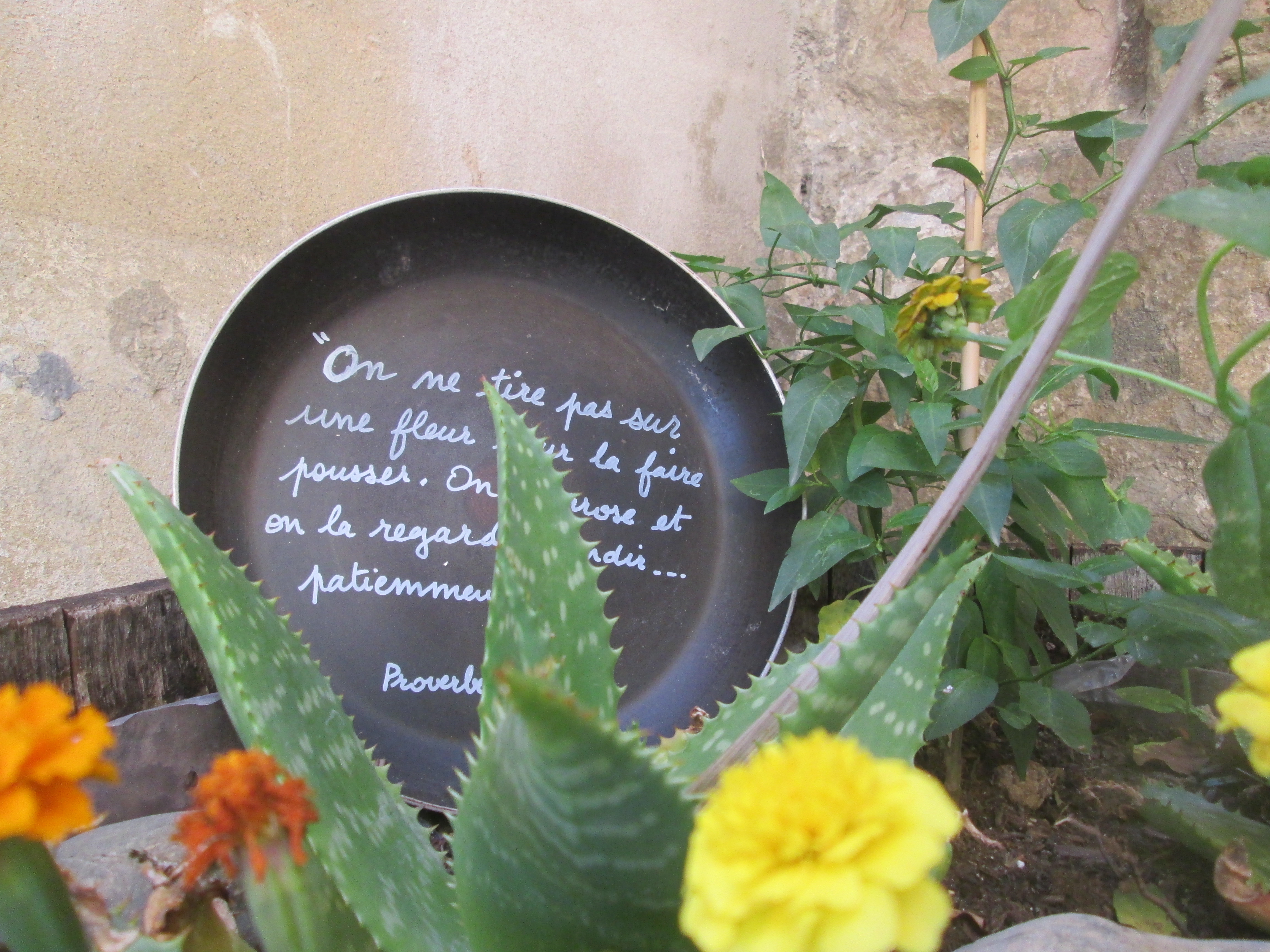 Au programme de l’année : création de cartes à graines de papier recyclé et décoration du papier avec des teintures végétales, fabrication de sacs en tissu à partir de vieux t-shirts et impressions avec des empreintes, création de sculptures en bouchons en volume et à plat, création de jardinières poétiques, fabrication de bijoux en papier selon la technique des paperolles, fabrication et customisation de poubelles pour le tri des déchets.