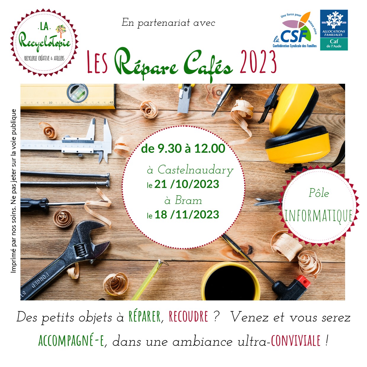 Des petits objets à réparer ? Des vêtements à recoudre ? Amenez-les à la Recyclotopie pour les faire réparer, dans une ambiance ultra-conviviale.